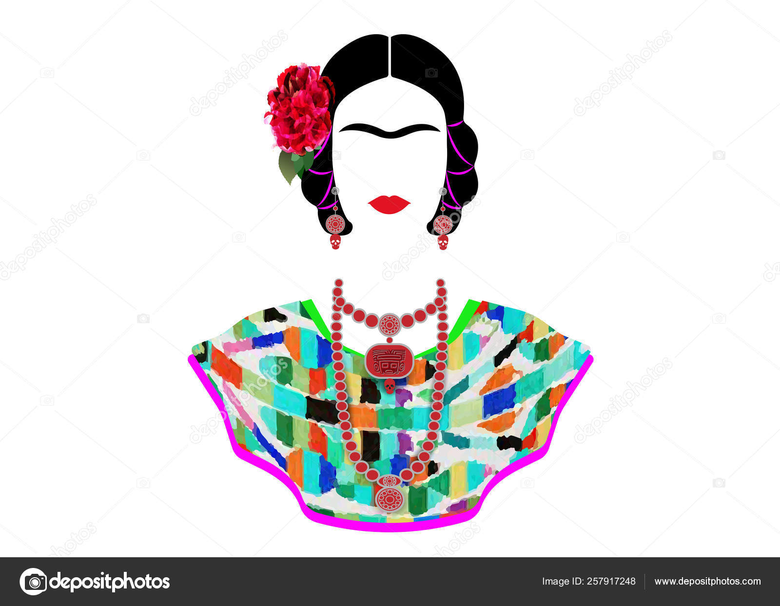 Frida Kahlo Retrato Vectorial Joven Hermosa Mujer Mexicana