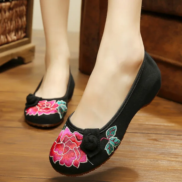 R 54 92 25 De Desconto Preto Vermelho Chines Do Vintage Bordado Sapatos Chinelos De Lona Verao Bolsa De Viagem Ocasional Pano Nacional Das Mulheres